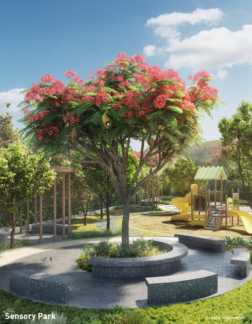 Located at the foothills of the Kalote-Mokashi range, flanked by seasonal waterfalls and streams, and surrounded by gorgeous greenery, lies the 80+ acre pristine ecosystem of Kalpataru Aria. A gated community of luxurious serviced plots & hillside townhouses; where only a few steps take you from the gentle caress of nature into one of the many luxurious amenities that surround your home in Karjat.